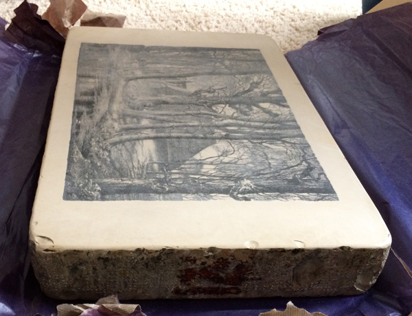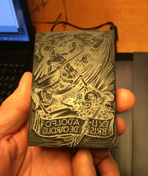 Here are a few examples of the engraved blocks and of a stone litho next to the end results. My hand is sometimes shown as well to give you an idea about the dimensions. Notice the mirrored images.