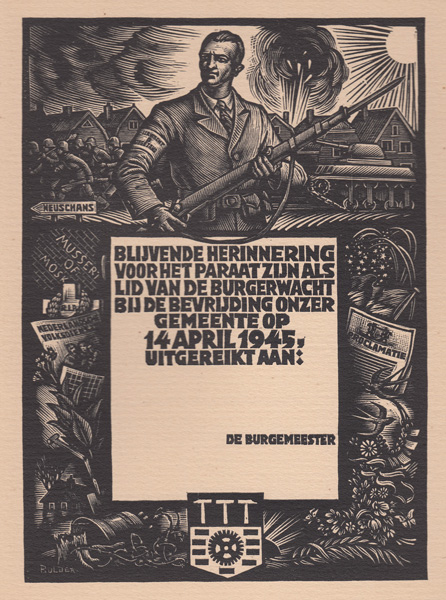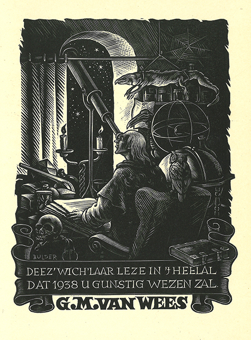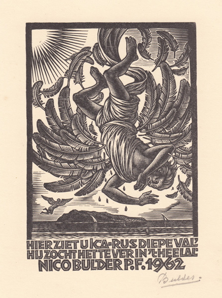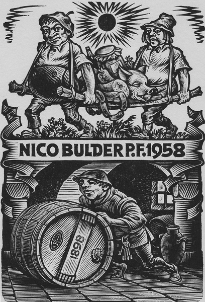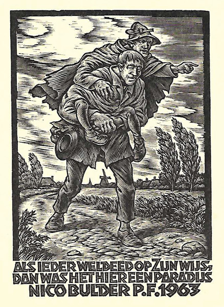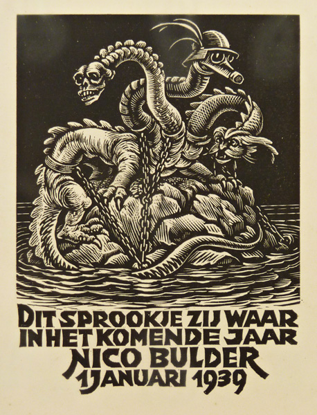 Willem I arriving in Scheveningen in 1813 to become king after Napoleon was defeated at Waterloo, aquarelle, 1938, Collection Veenkoloniaal Museum Veendam (NL)A 1938 cartoon: Roman legions invading the Netherlands, aquarelle, Collection Veenkoloniaal Museum Veendam (NL)1941: Huis aan de drie grachten. Click here for more infoIn memory of Adriaan Geerts, June 26 1947, X2, – Click here for more info.“The Wishing-Table, the Gold-Ass, and the Cudgel in the Sack” (“Tafeltje dek je, Ezeltje strek je en Knuppel uit de zak”), 1959 New Year’s card, X2, click here for more info.1955: 1956 New Year’s card Veenkoloniale Bank, X2Christmas 1940, wood engraving called “De Opgang van de Herders” (the rise of the shepherds).Christmas 1940, wood engraving (including subtext) called “De Opgang van de Herders” (the rise of the shepherds).1964: In Memoriam Nico Bulder. Evert Musch, colleague and friend added posthumously the text to the clock bell wood engraving that Nico Bulder created during the war . The inscription on the bell also states “Si Deus Pro Nobis, Quis Contra Nos” (Latin: If God is for us, who can be against us!)Letter of Mayor of Hoogezand in reference to “Burgerwacht” recognition charter, April 14, 1945.Commemorative charter of “Burgerwacht” (militia) participation signed by mayor, X2, April 14, 1945.Commemorative charter of “Burgerwacht” (militia) participation, April 14, 1945, blank version, X2 – Collection Veenkoloniaal Museum Veendam (NL)Birthday calendarBirthday calendarBirthday calendarBirthday calendarBirthday calendarBirthday calendarBirthday calendar1963: 1964 New Year’s card from Nico Bulder himself, X21962: 1963 New Year’s card from Nico Bulder himself, X21961: 1962 New Year’s card from Nico Bulder himself, X21961: 1962 New Year’s card from Nico Bulder himself1960: 1961 New Year’s card from Nico Bulder himself, X21959: 1960 New Year’s card from Nico Bulder himself, X21958: 1959 New Year’s card from Nico Bulder himself, X21957: 1958 New Year’s card from Nico Bulder himself, X21956: 1957 New Year’s card from Nico Bulder himself, X21955: 1956 New Year’s card from Nico Bulder himself, X21953: 1954 New Year’s card from Nico Bulder himself, X21935: 1936 New Year’s card from Nico Bulder himself, X2New Year’s card 1935 by Nico Bulder, 1934, cover page.New Year’s card 1935 by Nico Bulder, 1934, illustration on inside of folded card.1935: 1936 New Year’s card with letters “NV” from “Nederlandsche Vereeniging tot Afschaffing van Alcoholische Dranken”, X21934: 1935 New Year’s card from Johan Schwencke1942: “Littera Eget Scheda” “De Letter Behoeft Papier” (“Letters Need Paper, five other artists also made their own design for N.V. Papiergroothandel Luttkie en Smit Amsterdam.Christmas card 1935: Ans & Wim van der Kuijlen – originally red.Christmas card 1935: Ans & Wim van der Kuijlen – B/W version.1961 New Year’s card for “Veenkoloniale Bank” referring to La Fontaine’s fable: The Fish and the Fisherman.1955: 1956 New Year’s card Veenkoloniale Bank, X2Cornelis Adriaan Loeff Birth Announcement, 1937, X2Nico Bulder letter headNina Wind Thank-You Note, X2, 1962.Veenkoloniale Bank Hoogezand-Sappemeer logo, X2; the business of this bank was mainly related to ships and cargo.“Jacob Wrestling With The Angel”, 1935, X2, click here for more info.“Jacob Wrestling With The Angel”, 1962, X2 – Click here for more info. Coat of Arms, Groningen (city), designed by Nico Bulder, 1958, click here for more info.If/when the money ship arrives (“Als het schip met geld komt”)A shower of best wishes for 1935 (“Een regen van goede wenschen voor 1935”)Rear side of Christmas card, December 1934Ex libris Hendrik Veenhof designed by Peter Lazarov.Veenhof family 2001 New Year’s card designed by Peter Lazarov based on an original 1941 drawing by Nico Bulder.Page 29, illustration to poem by Guide Gezelle written by him just prior to his death in 1899.New Year’s card 1962 of Hoogezand company “Atlanta Kantoorartikelen”, 1961, X2, Collection Veenkoloniaal Museum Veendam (NL)Commemorative charter of “Burgerwacht” (militia) participation, April 14, 1945, for Nico Bulder, signed by mayor, X2 – Collection Groninger Museum1960: New Year’s card 1961: Nico Bulder liked this one because you can read it also upsidedown.Christmas Eve “Kerstnacht”, 1934 (“voor het Kind” series)Three Kings (“Driekoningen”) 1934 (“voor het Kind” series)