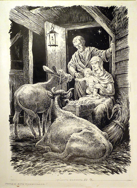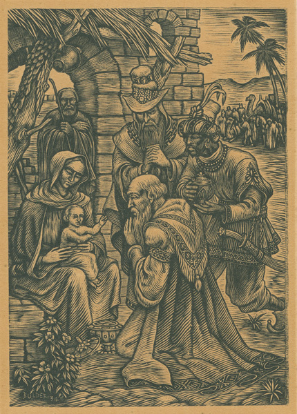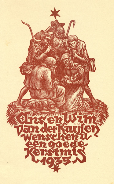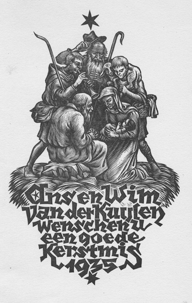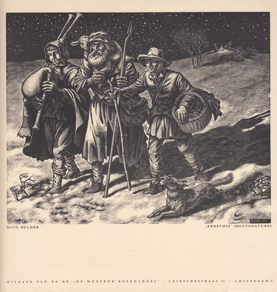 Christmas 1940, wood engraving (including subtext) called “De Opgang van de Herders” (the rise of the shepherds).Christmas 1940, wood engraving called “De Opgang van de Herders” (the rise of the shepherds).Christmas edition of 1953 Winschoter Courant; scratchboard or scraperboard technique. Collection Veenkoloniaal Museum Veendam (NL)Christmas edition of 1953 Winschoter Courant; scratchboard or scraperboard technique. Collection Veenkoloniaal Museum Veendam (NL)Three Kings (“Driekoningen”) 1934 (“voor het Kind” series)Christmas Eve “Kerstnacht”, 1934 (“voor het Kind” series)
