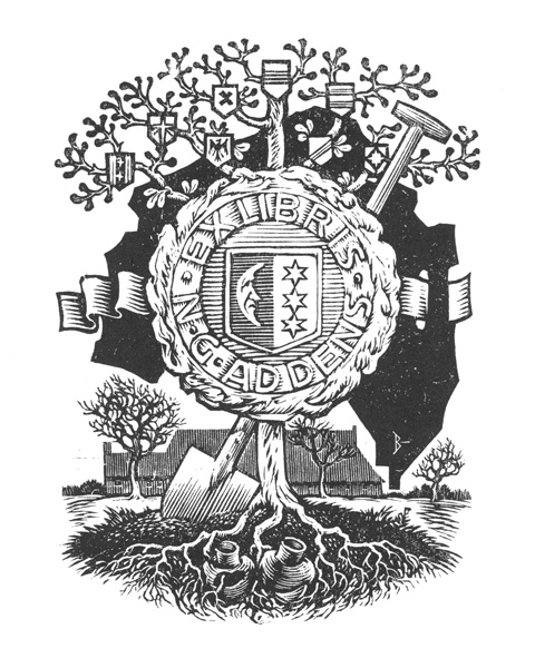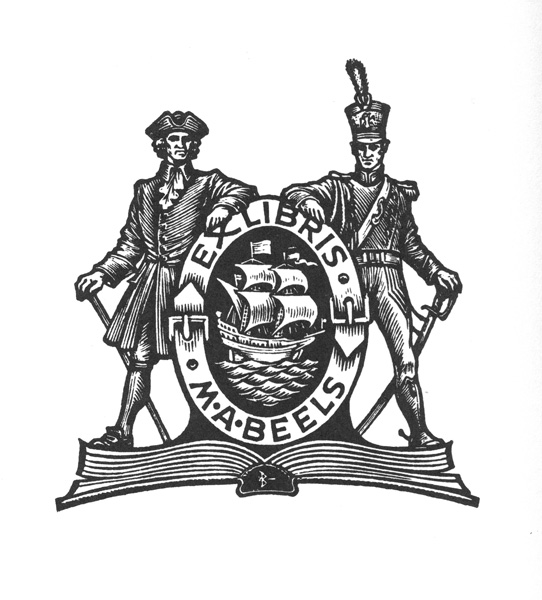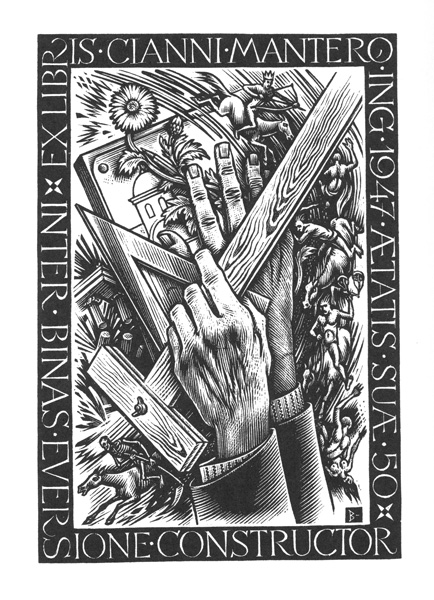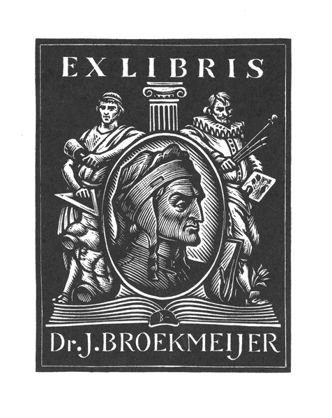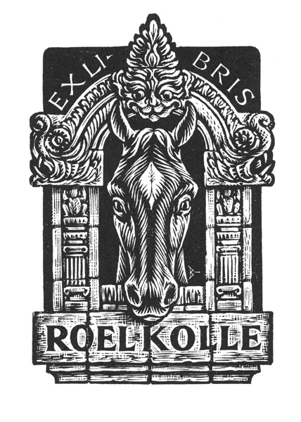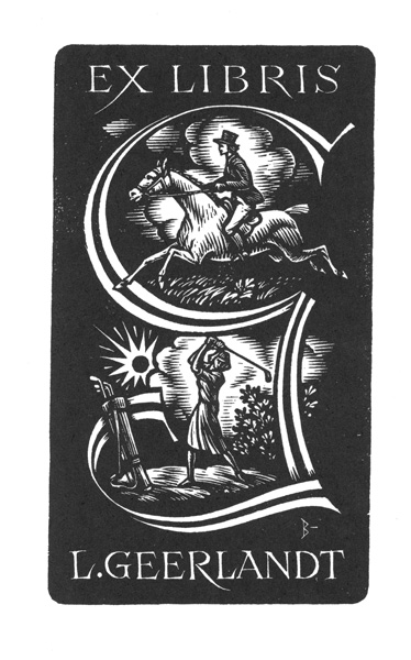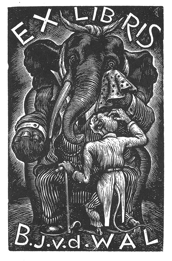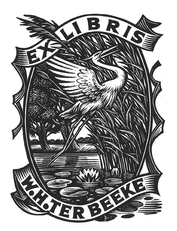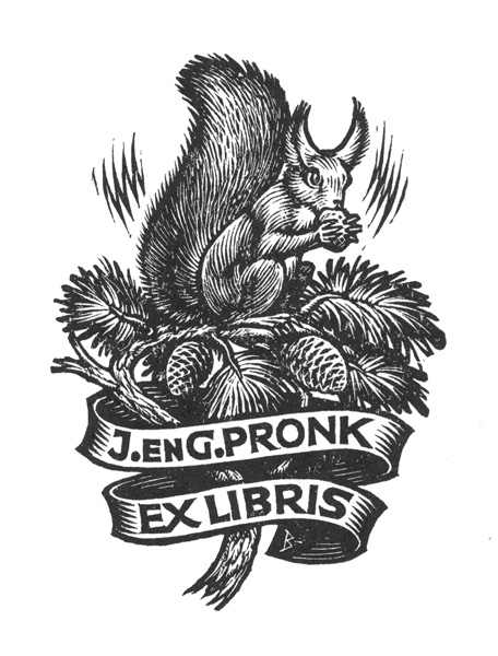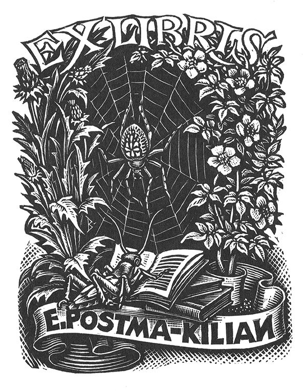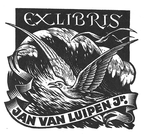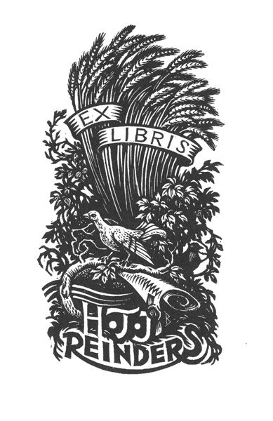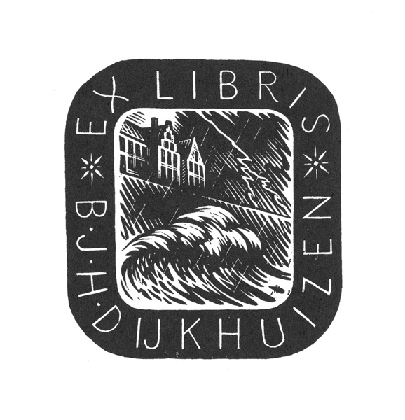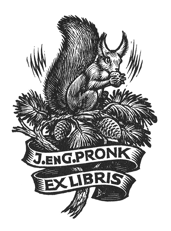 Many of the ex libris that Nico Bulder made for others bear his monogram “B-“; sometimes it is in plain sight, other times it is more hidden.