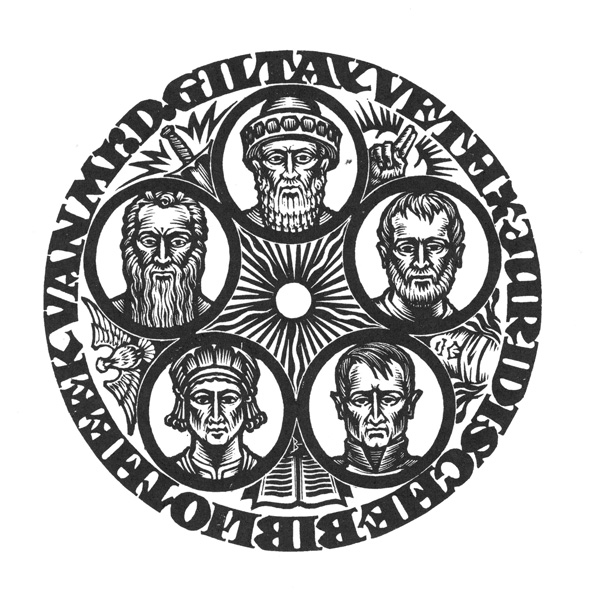 Nico Bulder was one of the best European “Ex Libris” creators of his time. He spent a lot of time and effort from 1926 to 1963 to refine this most intricate form of graphical art. The level of detail that Nico Bulder could incorporate in these small wood engravings is almost incomprehensible. He made four ex libris for himself that we know of: Opus 75 (1943), Opus 45 (1938), Opus 12 (1932) and an very early unnumbered version . The Opus numbers refer to the book “Schoonheid in zwart-wit” published by “van Gorcum” (Assen, NL) in 1996 in cooperation with the Nico Bulder Stichting.