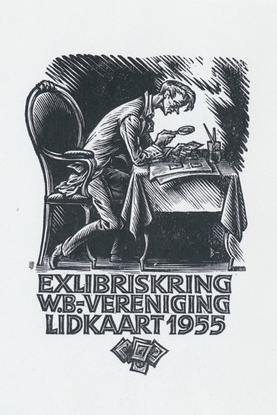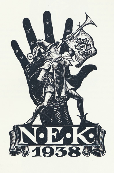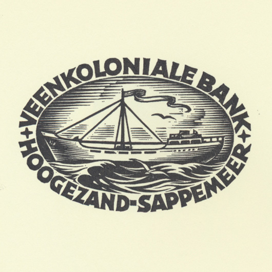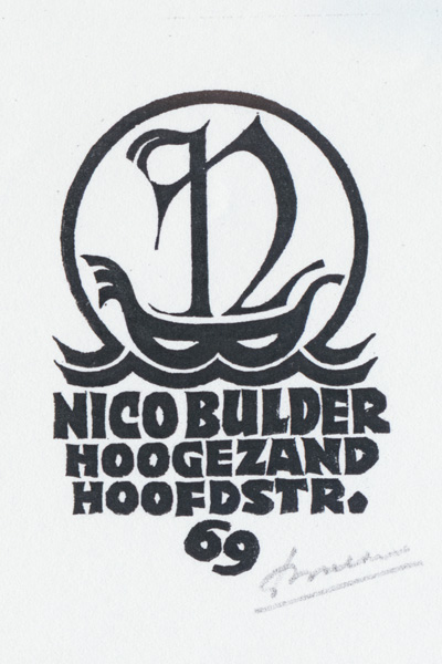 Nico Bulder created many smaller illustrations like logos, vignettes, letterheads etc. Considering that most were wood engravings and relatively small, the patience, diligence and craftmanship required for the miniature fine lines is quite astounding. Interestingly, these small illustrations like some of his exlibris often exhibit a different, more joyful style than most of his larger artworks.