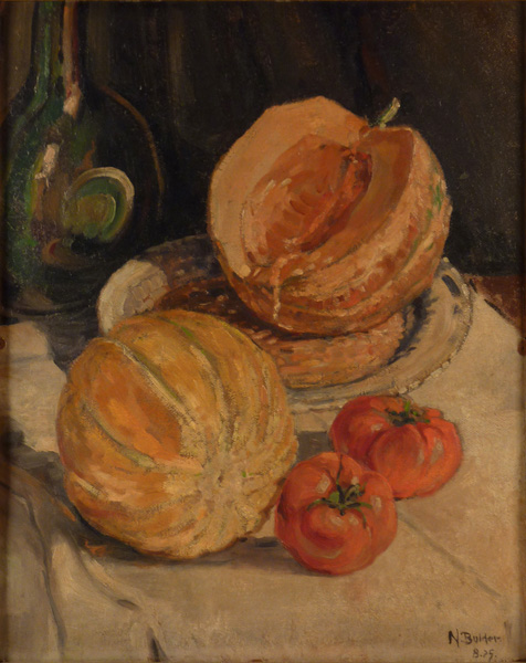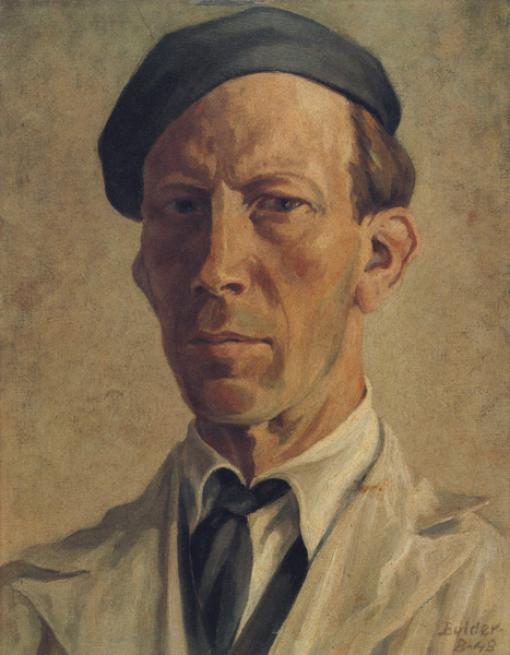 “Stillleven met groene fles, meloenen en tomaten”, oil painting, 1925, Collection Veenkoloniaal Museum Veendam (NL)“Stilleven met twee bokkings op bord”, oil painting, 1925, Collection Veenkoloniaal Museum Veendam (NL)“Stilleven met twee kabeljauwen op een bruin aarden schotel”, oil painting, 1925, Collection Veenkoloniaal Museum Veendam (NL)Nico Bulder’s last work: “Mephisto in de Veenkoloniën” galloping horse with rider in thunderstorm, oil painting, 1964, Nico Bulder was working on this painting when he got sick and passed away, Collection Veenkoloniaal Museum Veendam (NL)“De Zaaier” (farmers fertilizing and plowing), oil painting, 1932, Collection Veenkoloniaal Museum Veendam (NL)Self portrait, 1948Gouache painting (courtesy NBS) made very early in his career or made during his Minerva study, probably one of a kind.Rear side of gouache flower painting“Stilleven met urn, vijzel en een boekenrug” (mortar, pestle and pot), aquarel on paper, 41 cm x 47 cm, year unknown.Collection Veenkoloniaal Museum Veendam (NL)Collection Veenkoloniaal Museum Veendam (NL)“Stilleven met twee peren en groene fles”, painted during Nico’s years as a Minerva student, Collection Veenkoloniaal Museum Veendam (NL)Apple tree, oil painting, year unknown, Collection Veenkoloniaal Museum Veendam (NL)